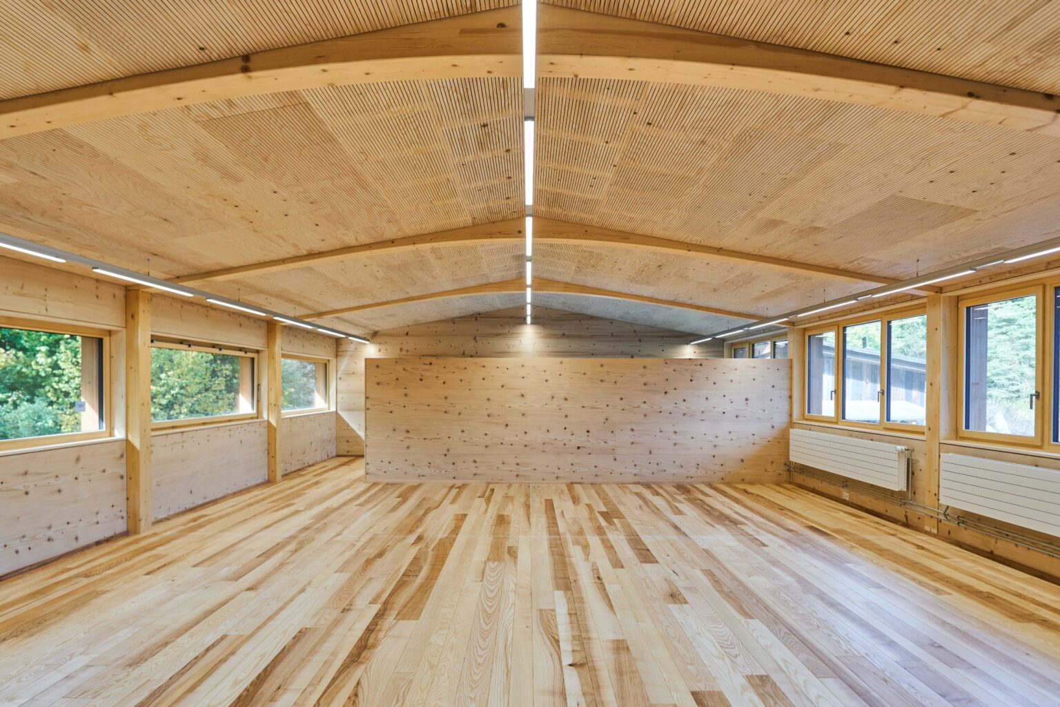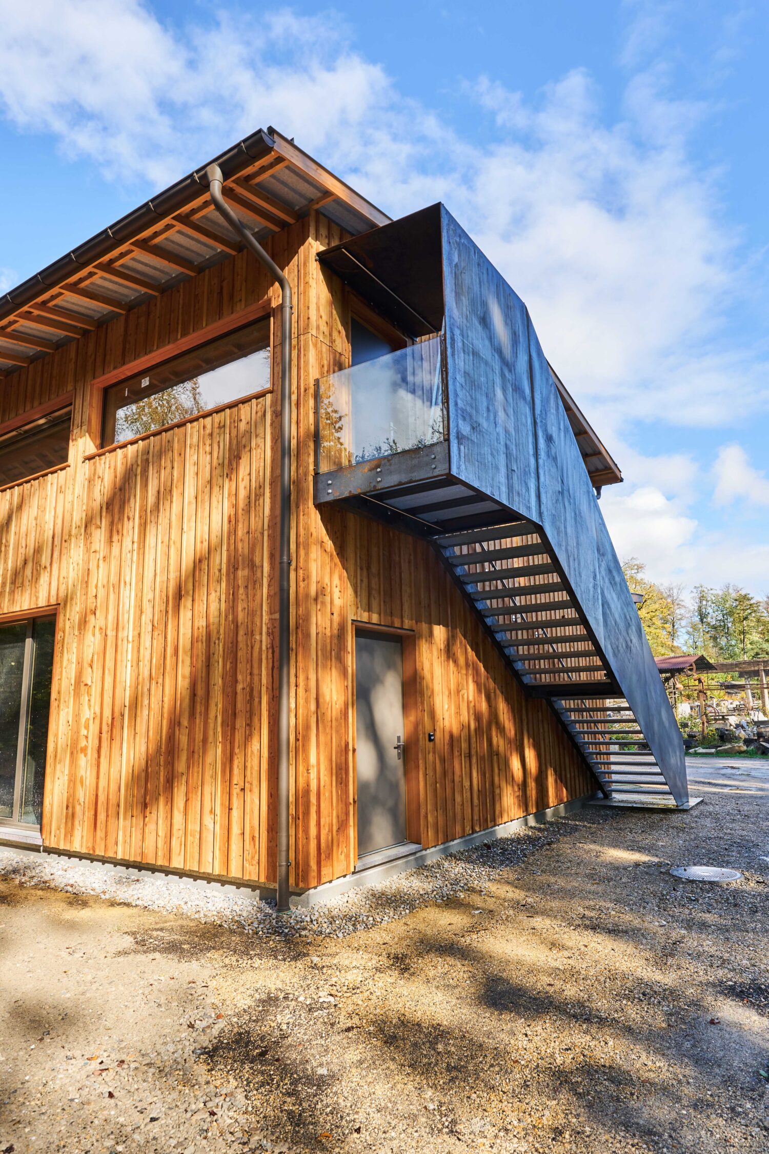 Der Forstwerkhof der Bürgergemeinde Solothurn fügt sich mit Form und Materialwahl harmonisch in das bestehende Areal ein. Durch die Verwendung von Holz aus eigenen Wäldern und die Verarbeitung in regionalen Betrieben wurden Transportwege minimiert und Ökologie mit Wirtschaftlichkeit verbunden. Unbehandeltes Holz, rohe Oberflächen und das sichtbare Tragwerk betonen den funktionalen Charakter des Gebäudes.